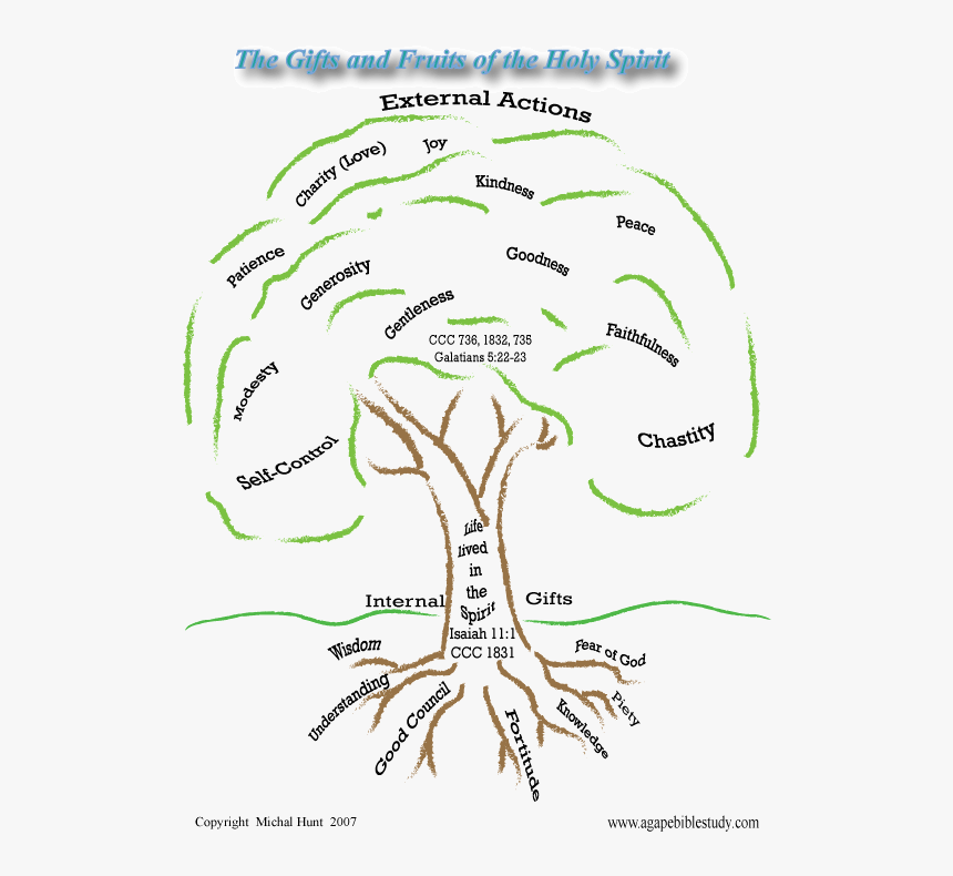 The Sacrament of Confirmation makes us more like Jesus through the presence of the Holy Spirit. This sacrament helps us to live a holy life through the virtues gifts and fruits. The Fruit of the Holy Spirit sometimes incorrectly referred to as the Fruits of the Holy Spirit is a biblical term that sums up nine attributes of a person or community living in accord with the.